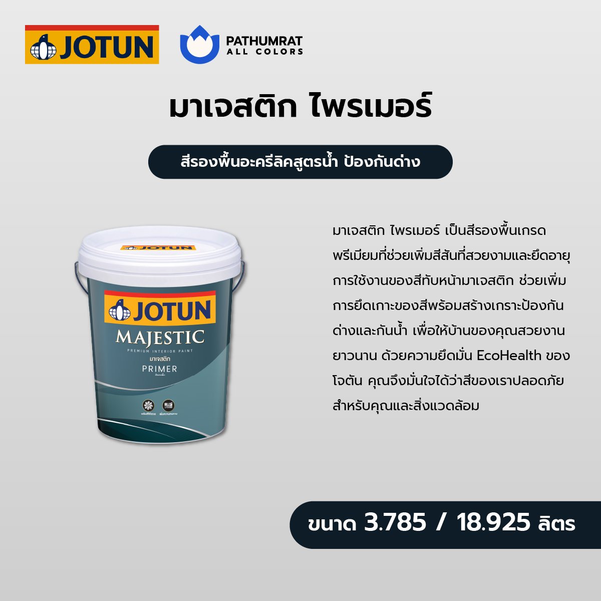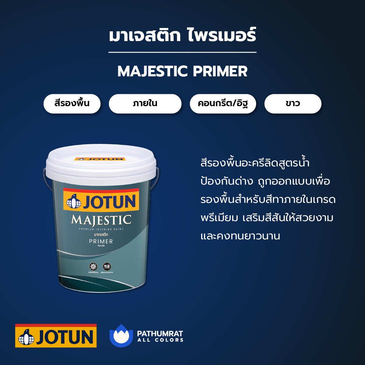 Categories : สีโจตัน ,  สีทาบ้าน ภายใน-ภายนอก ,  สินค้าทั้งหมด ,  สีน้ำทาอาคาร ,  สีทาอาคารภายใน ,  Primer ,