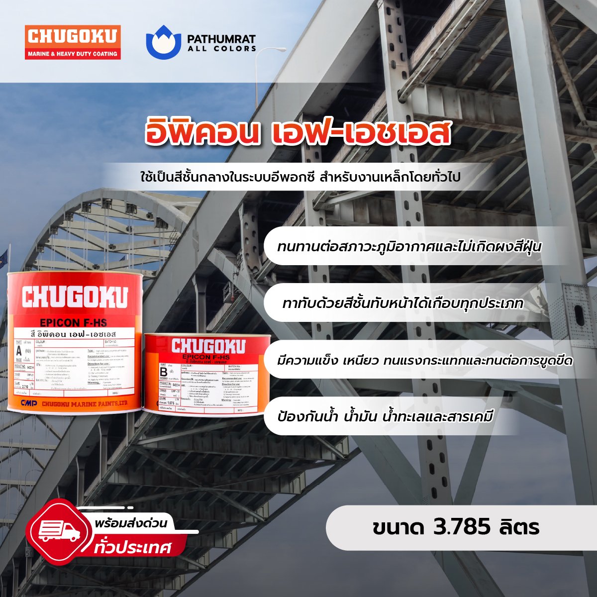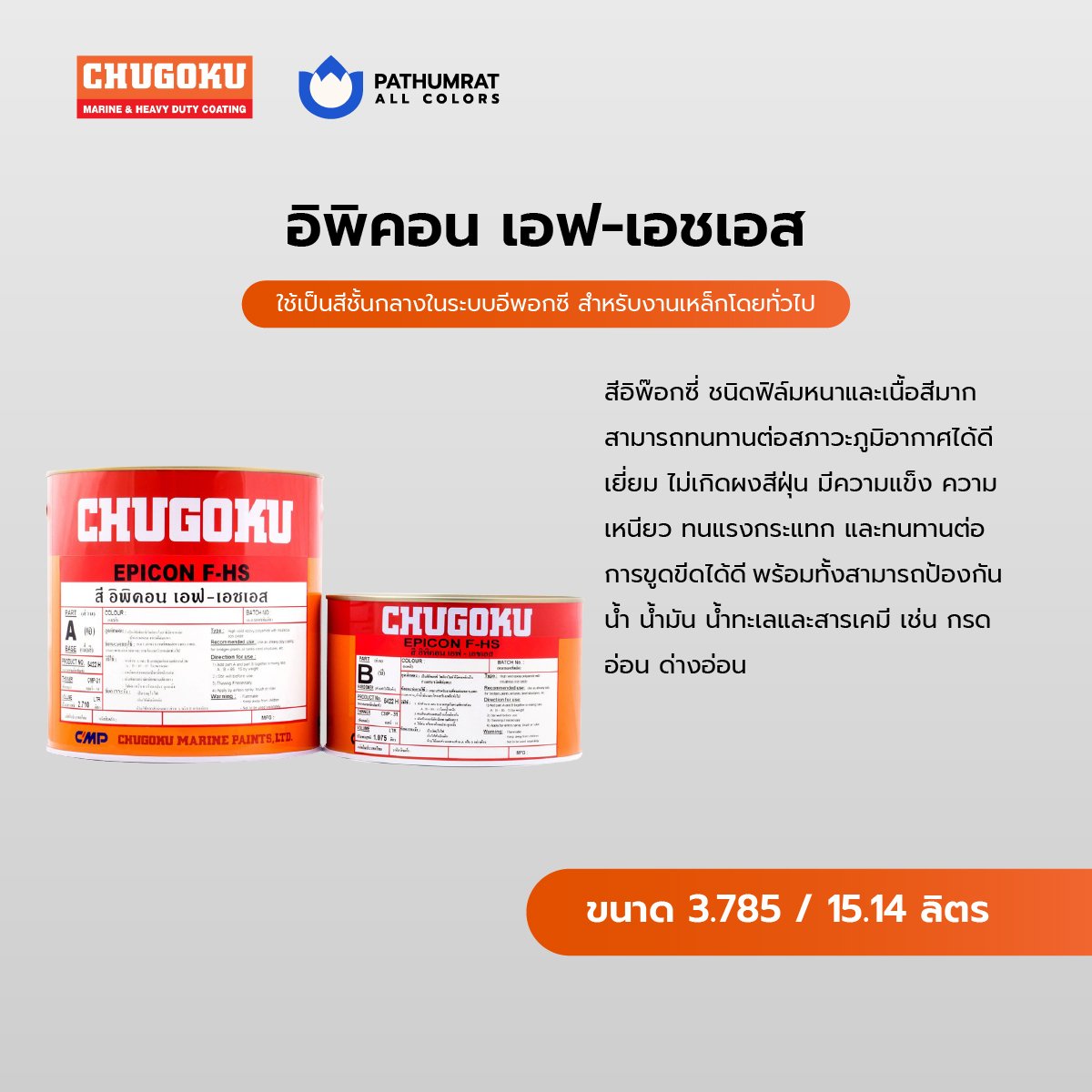 สีอิพ๊อกซี่ ชนิดฟิล์มหนาและเนื้อสีมาก สามารถทนทานต่อสภาวะภูมิอากาศได้ดีเยี่ยม