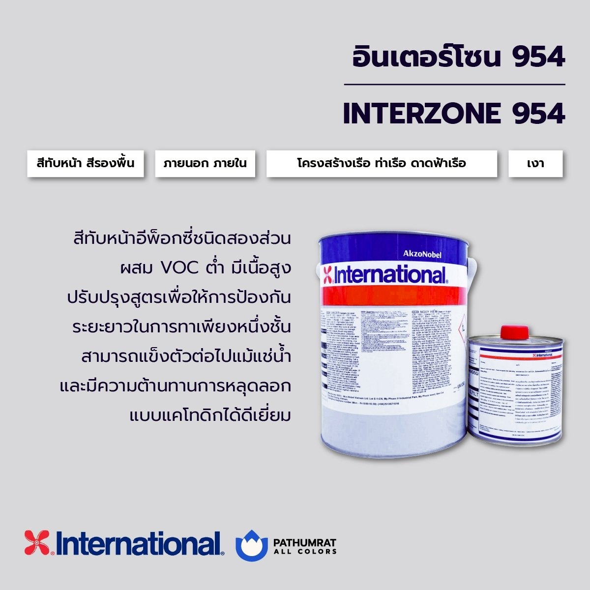 Interzone 954 เหมาะสำหรับงานซ่อมบำรุงรักษาในการที่ต้องแช่อยู่ในน้ำหรือมีความชื้นสูง เนื้อสีเยอะทนการกัดกร่อนได้ดี โทรสอบถามราคา*** ADD IDLINE @q789