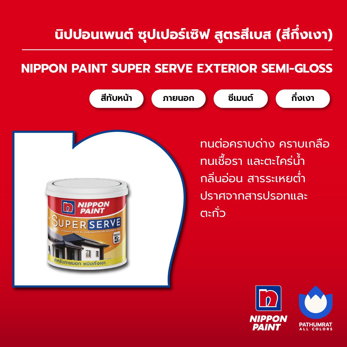 นิปปอนเพนต์ ซุปเปอร์เซิฟ (กึ่งเงา) 18 ลิตร เบสA