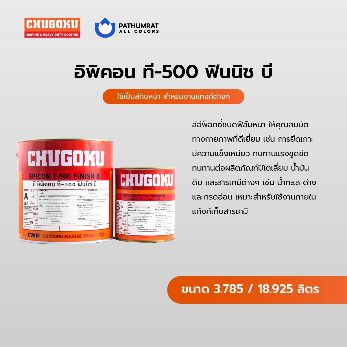 หมวดหมู่ : สีชูโกกุ ,  สีชูโกกุ อีพ็อกซี่ ,  สินค้าทั้งหมด ,  สีอุตสาหกรรม ,  สีอีพ็อกซี่ ,