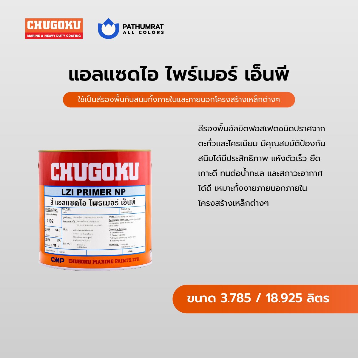 Chugoku LZI Primer NP สีชูโกกุ แอลแซดไอ ไพรเมอร์ เอ็นพี รองพื้นกันสนิมชูโกกุ